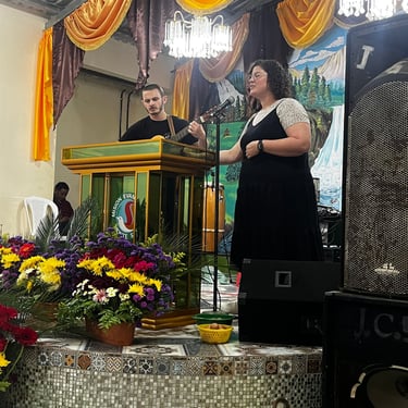 The team was quite equipped for this, having flown from Charlotte the day after the Microsoft crash had shut down the world of commercial air travel completely. Our original 6 hour flight itinerary turned into 19 hours, with an extra unplanned layover in El Salvador. We were both accustomed to slow travels and in need of some extra time to rehearse, so our Sunday morning drive was like something out of a sitcom. We practiced our music, laughed through some rough Spanish pronunciations, and quite literally bounced along until we arrived at Iglesia Evangélica Monte Sión.